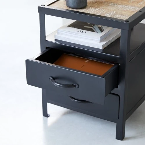 Maisons Du Monde Tables De Chevet Table De Chevet 2 Tiroirs En Acacia Et Manguier Noire