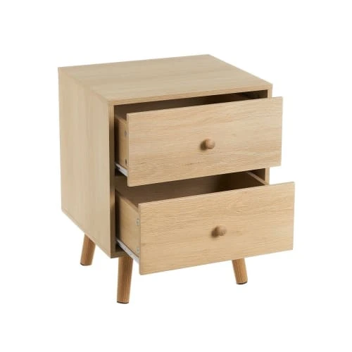 Table de chevet en bois MDF comprenant 2 tiroirs. MatiĂšre: MDF – Couleur: Bois – Dimensions: Hauteur 50cm x largeur 35cm x Longueur 40cm